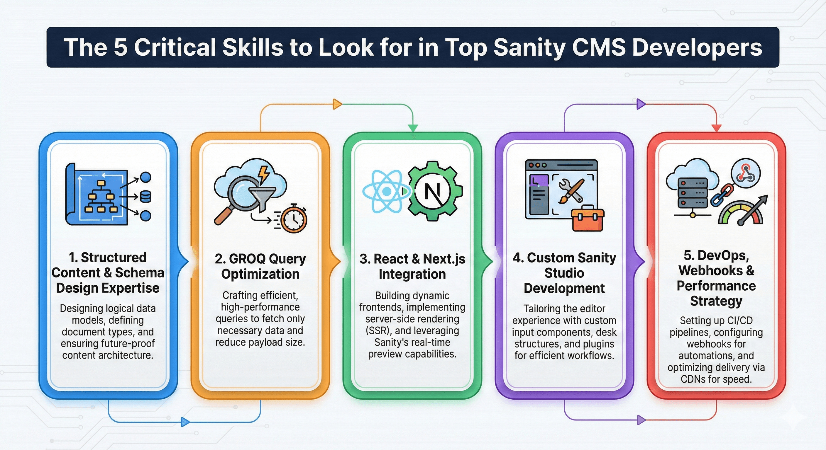 If you’re evaluating Top Sanity CMS Developers, these five skill areas are non-negotiable.